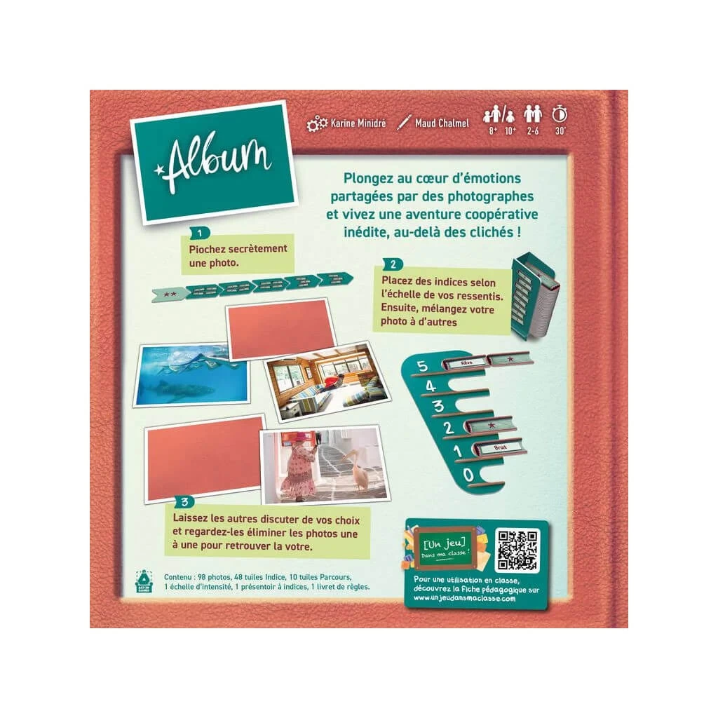 Album est un jeu de développement de la connaissance de soi et des autres. Retrouvez vous autour d’un défi coopératif sur les ressentis et les interprétations de chacun·e.