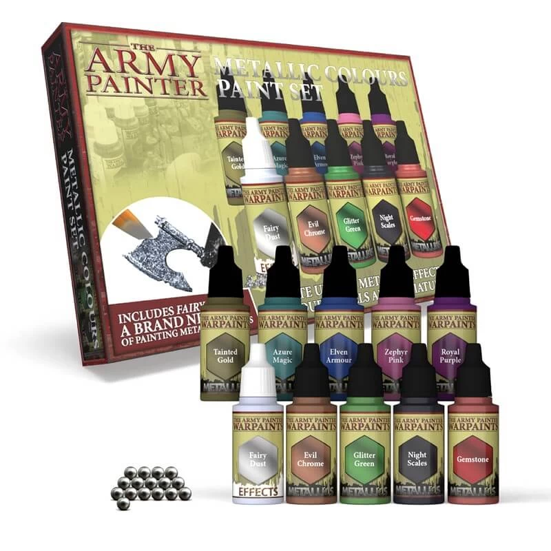 Army Painter – Warpaints Metallics Colors Paint Set -Tous les tons d’armures, bijoux, machines pourront être représentés avec le Warpaints Metallics Colors Paint Set. 10 teintes métalliques sont présentes dans ce set.