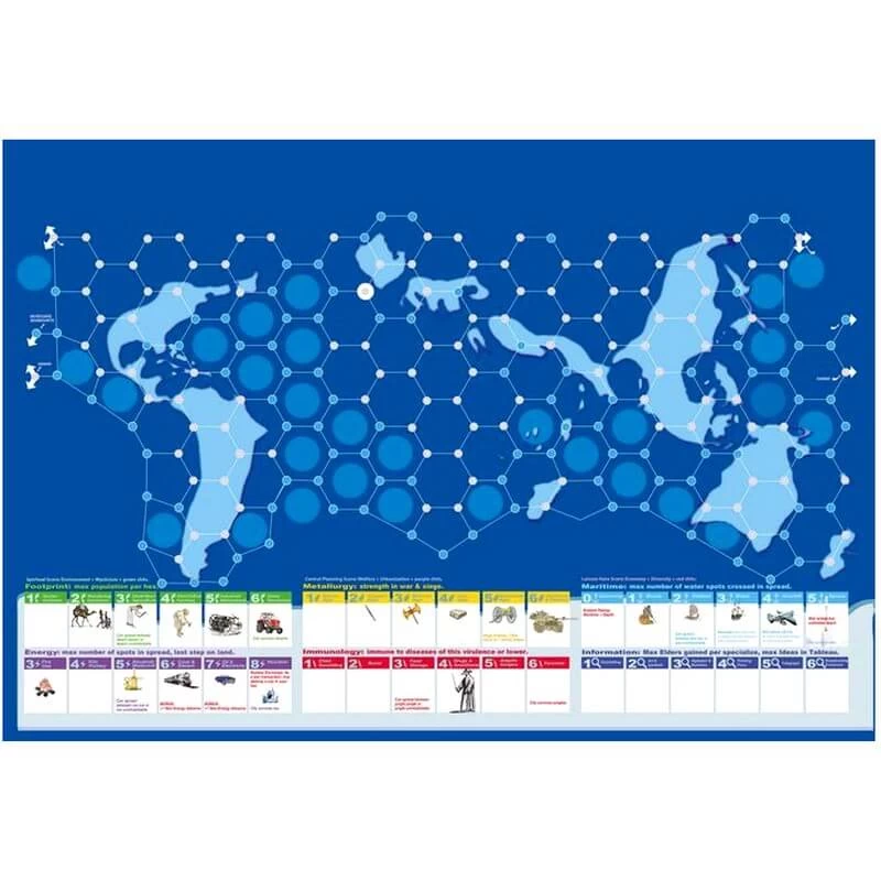 Vous faites évoluer votre population à la fois en vous diffusant sur une carte du monde (pour acquérir des terres et des ressources) et en vous diffusant sur le marché de la pensée visionnaire (pour acquérir des possibilités d’action et des technologies). Le marché de la vision se compose d’idées de cartes de l’évolution de l’homme dans laquelle vous investissez. Le jeu est guidé par des événements qui se déroulent à des moments précis de l’histoire et après un certain nombre d’événements, ou lorsque quelqu’un atterrit sur la Lune si cela se produit plus tôt, le jeu se termine. Le gagnant est calculé en fonction de votre progression.