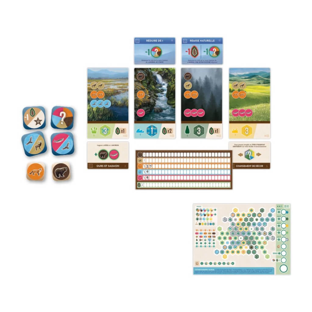 Lancez simultanément des dés, collectez des animaux sauvages et complétez des cartes d’habitat pour remplir les différents environnements de Cascadia.