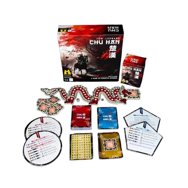 Le Chu Han est un jeu de ruse, d’escalade et d’élimination qui se compose de plusieurs mains. Les joueurs commencent chaque main avec un mélange de cartes Chu et Han, représentant les tensions au sein des clans, les prises d’otages et les changements d’allégeance.