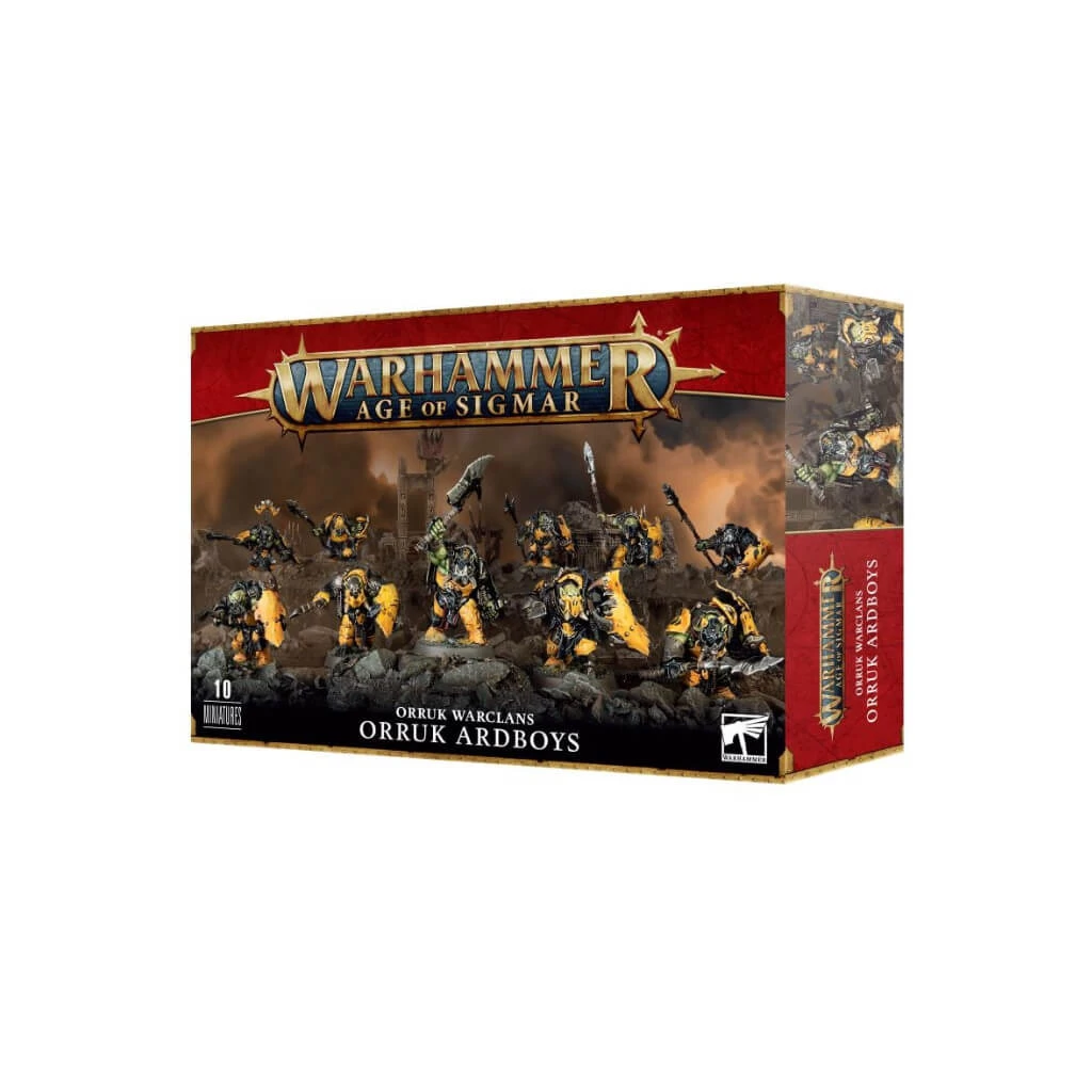 Les Durboys Orruks se ruent dans la mêlée en poussant des cris déments et dans le boucan de leurs armures de plates en fonte. Ces hordes de combattants féroces et couturés de cicatrices se fraient un chemin à travers les rangs ennemis à l’aide de toutes sortes d’armes grossières mais affreusement tranchantes, repoussant les représailles et les ennemis malchanceux à coups de boucliers lourds.