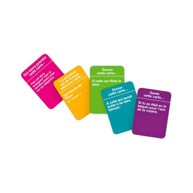 Dénouez les langues, mettez vos amies dans l’embarras en jouant avec les 500 cartes de ce coffret :