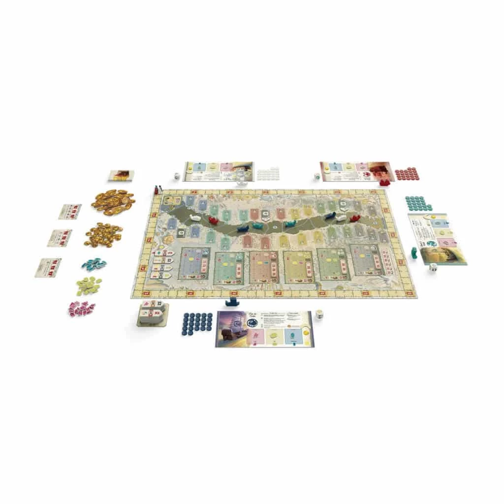 À chaque tour, votre dé vous présente trois opportunités uniques, mais vous ne devrez en retenir qu’une : vous pourrez soit développer votre empire commercial en construisant des bâtiments sur la berge, soit naviguer vers l’embouchure de la rivière pour charger vos soutes d’or et de marchandises, soit remplir un juteux contrat avec un client influent. Si le résultat de votre dé ne correspond pas à votre stratégie, vous pourrez toujours en appeler aux dieux pour obtenir un coup de pouce du destin !