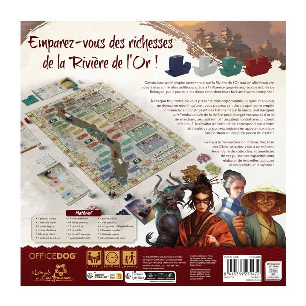 Construisez votre empire commercial sur la Rivière de l’Or tout en affrontant vos adversaires sur le plan politique, grâce à l’influence gagnée auprès des nobles de Rokugan, pour peu que les dieux accordent leurs faveurs à votre entreprise !