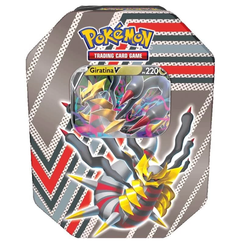 Cette boîte métal à collectionner contient une carte promo Giratina V, ainsi que 4 boosters Pokémon !