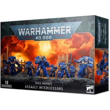 Les Intercessors d’Assaut sont une des unités de combat rapproché les plus répandues dans l’arsenal chapitral. Ils se ruent vers l’ennemi en faisant feu de leurs pistolets bolters lourds, et une fois au contact, ils éliminent promptement toute adversité à grands coups d’épées tronçonneuses.