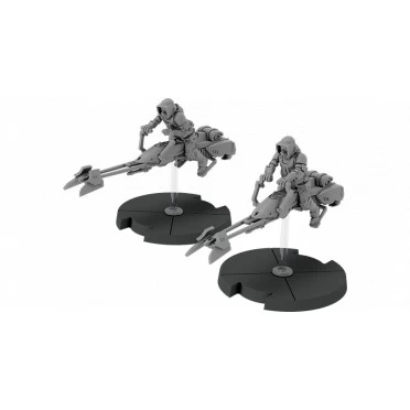 Souvent équipés de systèmes de brouillage ou de communication à longue portée, l’Empire utilise les speederbikes pour perturber les communications ennemies et harceler les petites formations de soldats, ou pour couvrir de grandes portions d’un champ de bataille en multipliant les zones de déploiement.