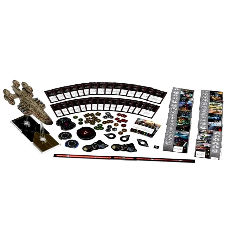 Une sélection de cartes de vaisseau, les marqueurs et les cadrans de manœuvres vous permettent de déployer votre C-ROC au combat, tandis qu’une série de cartes d’amélioration vous invite à ajouter une flopée de coups bas à votre croiseur.