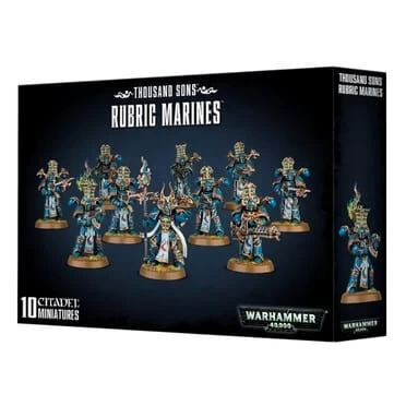 Ce kit plastique contient les pièces nécessaires pour assembler 10 Rubric Marines, armés de bolters Inferno ou de lance-flammes Warp. Une figurine peut être armée d’un canon Soulreaper, une peut porter une icône de flammes, et une peut être assemblée sous forme d’Aspiring Sorcerer, armé d’un sceptre de force et d’un pistolet bolter Inferno ou d’un lance-flammes Warp léger. Kit fourni avec 10 socles ronds Citadel de 32mm.