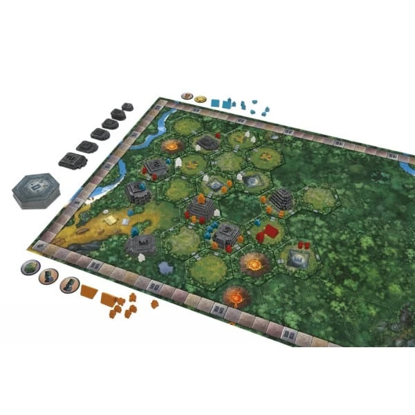 Vous disposez d’un nombre limité de points d’action par tour pour mener votre équipe à travers la jungle et découvrir des temples, trouver des trésors, établir des campements … Mais le site est convoité, et la concurrence est rude !