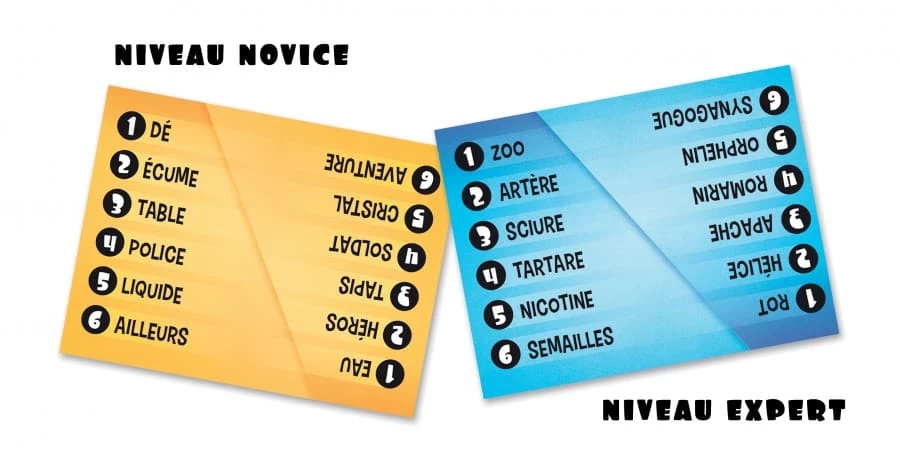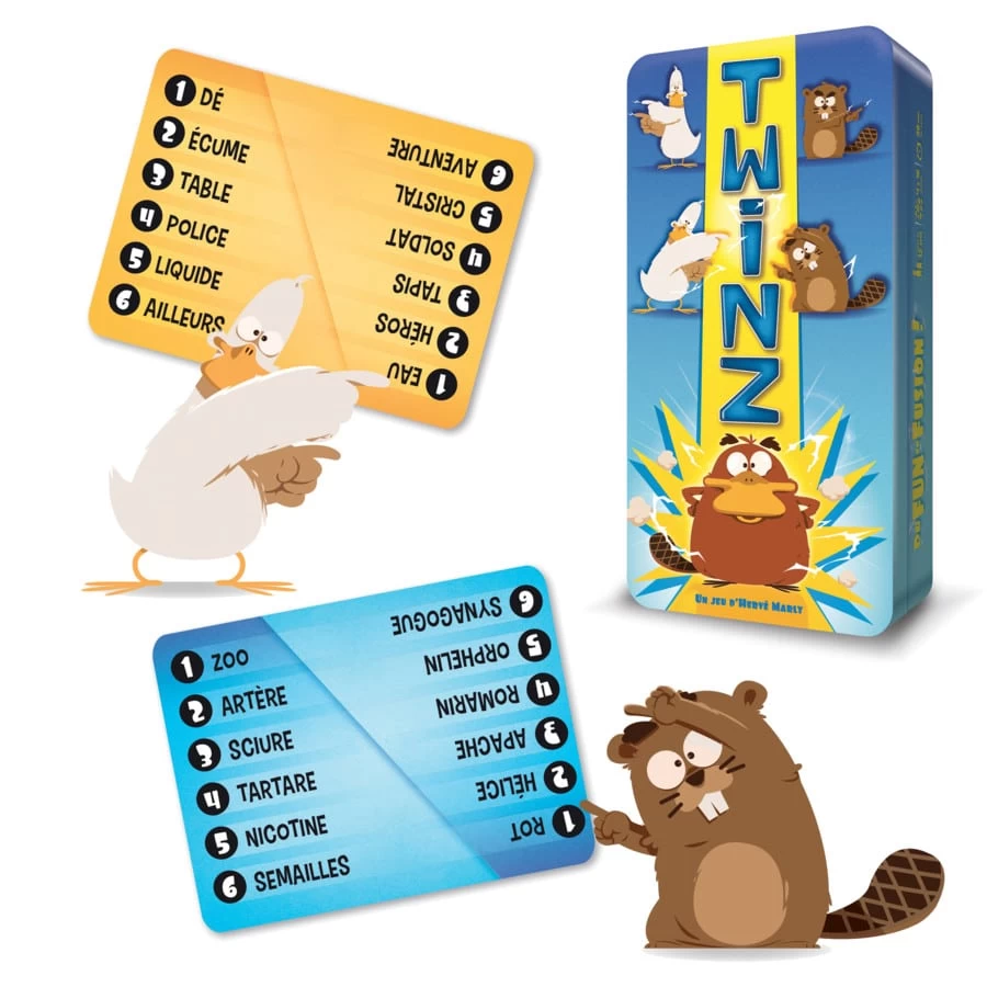 Vous et votre voisin devez faire deviner un mot imposé aux autres joueurs, en donnant chacun un indice à voix haute… En même temps ! Attention : si vous donnez le même indice que votre partenaire, vous perdrez des points ! C’est donc sans concertation, dans une joyeuse cacophonie, que vous devrez être pertinent sans aller à l’essentiel.
